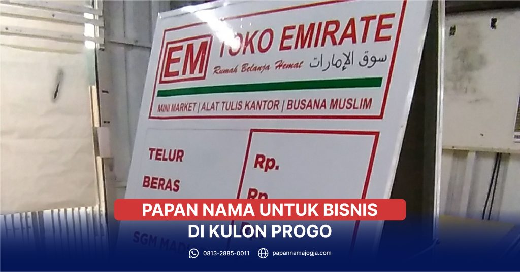 Di daerah seperti Kulon Progo dan daerah lainya di Indonesia sudah banyak yang menggunakan papan nama sebagai media promosi karena desainnya yang simple sehingga dapat menarik perhatian orang yang melihatnya. Papan nama juga masih sangat bisa dikembangkan untuk dijadikan sebagai icon di tempat bisnis yang kita jalani.
